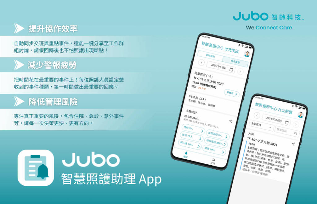 最新消息 Read more 2025(下)客戶見面會|智慧照護科技解方 2025 年 8 月 30 日 / 558 / 0 智齡科技2025客戶見面會【秋季場】來了!Jubo... Continue reading jubo.health