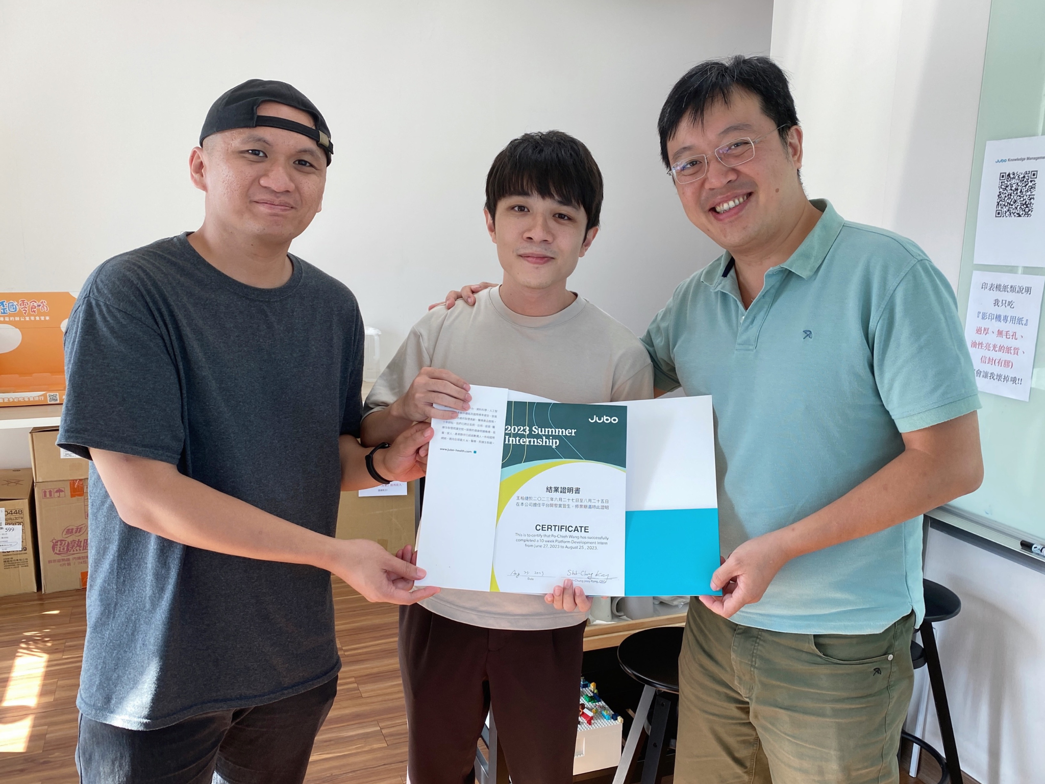 我在加入實習前以及實習結束後都覺得 Jubo 是一家非常有願景跟使命感的公司,尤其是長照這個領域,是需要非常多醫療專業知識跟技術投入的。Jubo的產品迭代速度也非常快,是一家扁平、能快速將想法轉換為產品的公司。 ​
